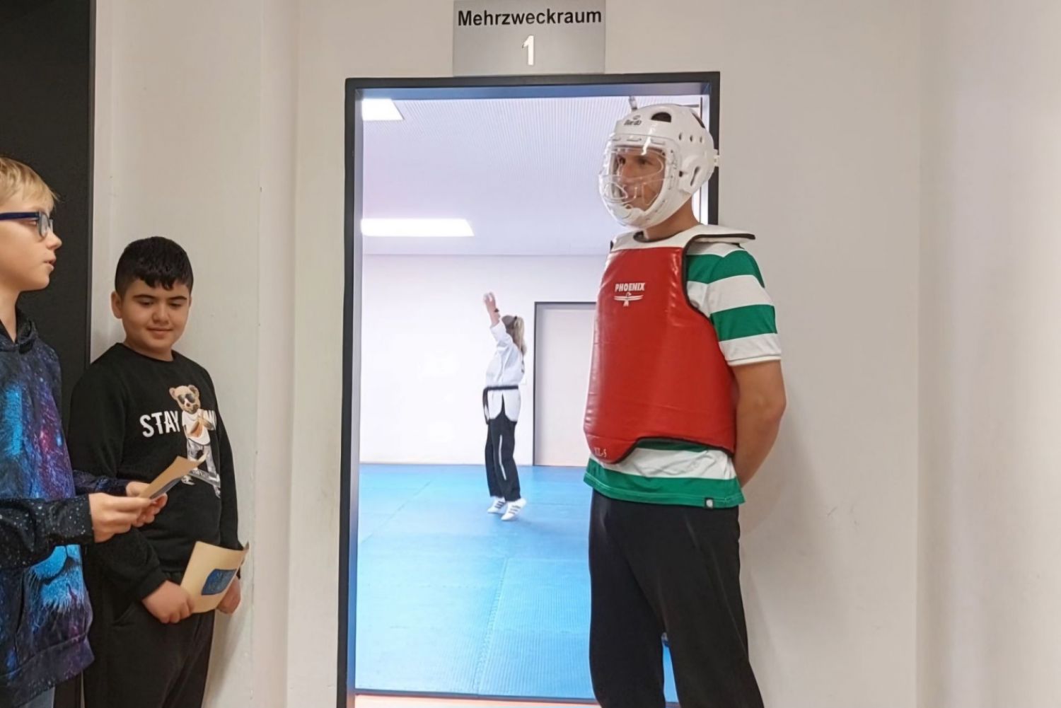 Mit einer schwungvollen Idee und ordentlich Sprungkraft machten Schülerinnen der 7. Klassen auf ein wichtiges Thema aufmerksam: Wasser trinken! Ihre rhythmische Sprungkombination wurde zum Startsignal für eine spritzige Initiative – die Anschaffung eines Trinkwasserspenders.